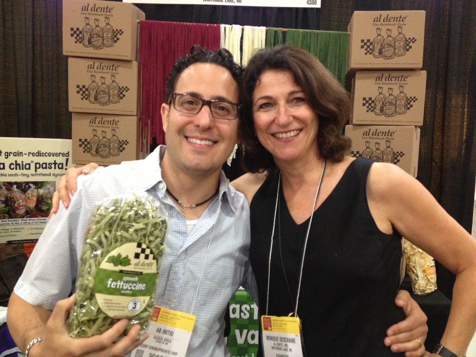 Earlier this week, my mom, her co-worker Chef Cliff, and I met up at the NY Fancy Food Show. Our good friends from Ann Arbor, The Deschaines, represented Al Dente Pasta at the Food Show; a most vibrant and colorful booth full of pasta!